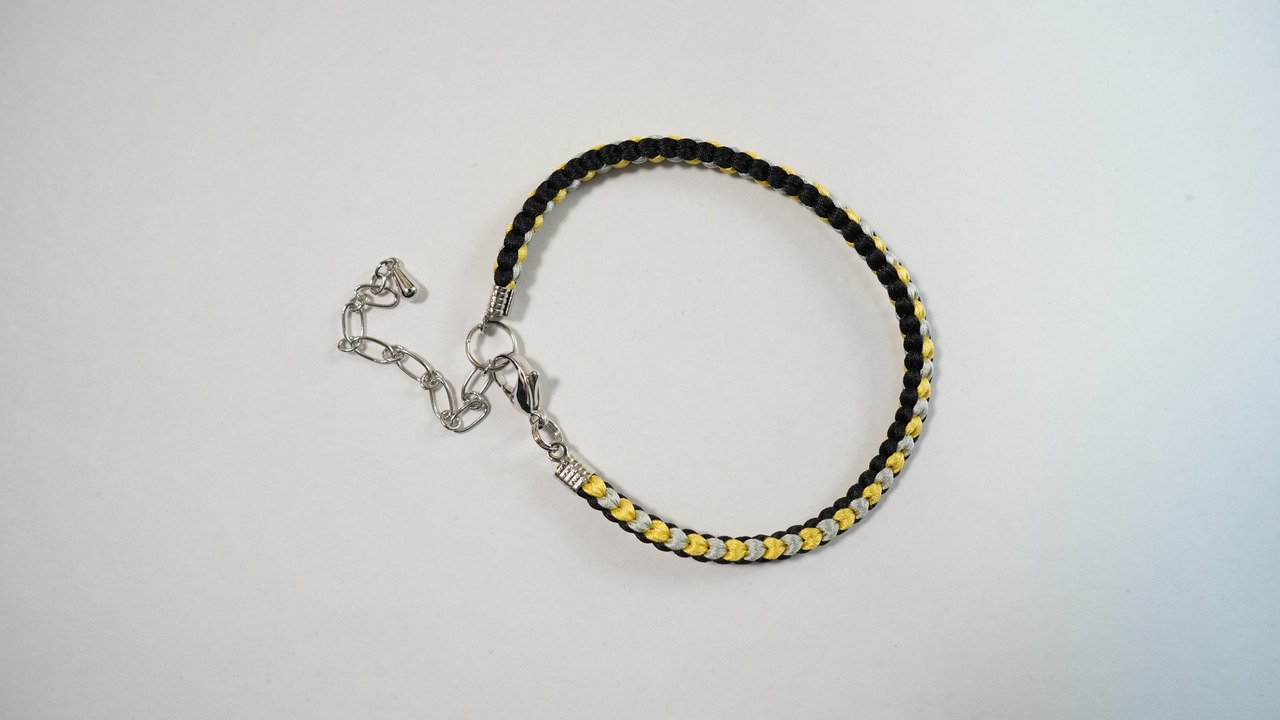 黄色・グレー・黒の絹糸を使用した、一重タイプの組紐ブレスレットです。