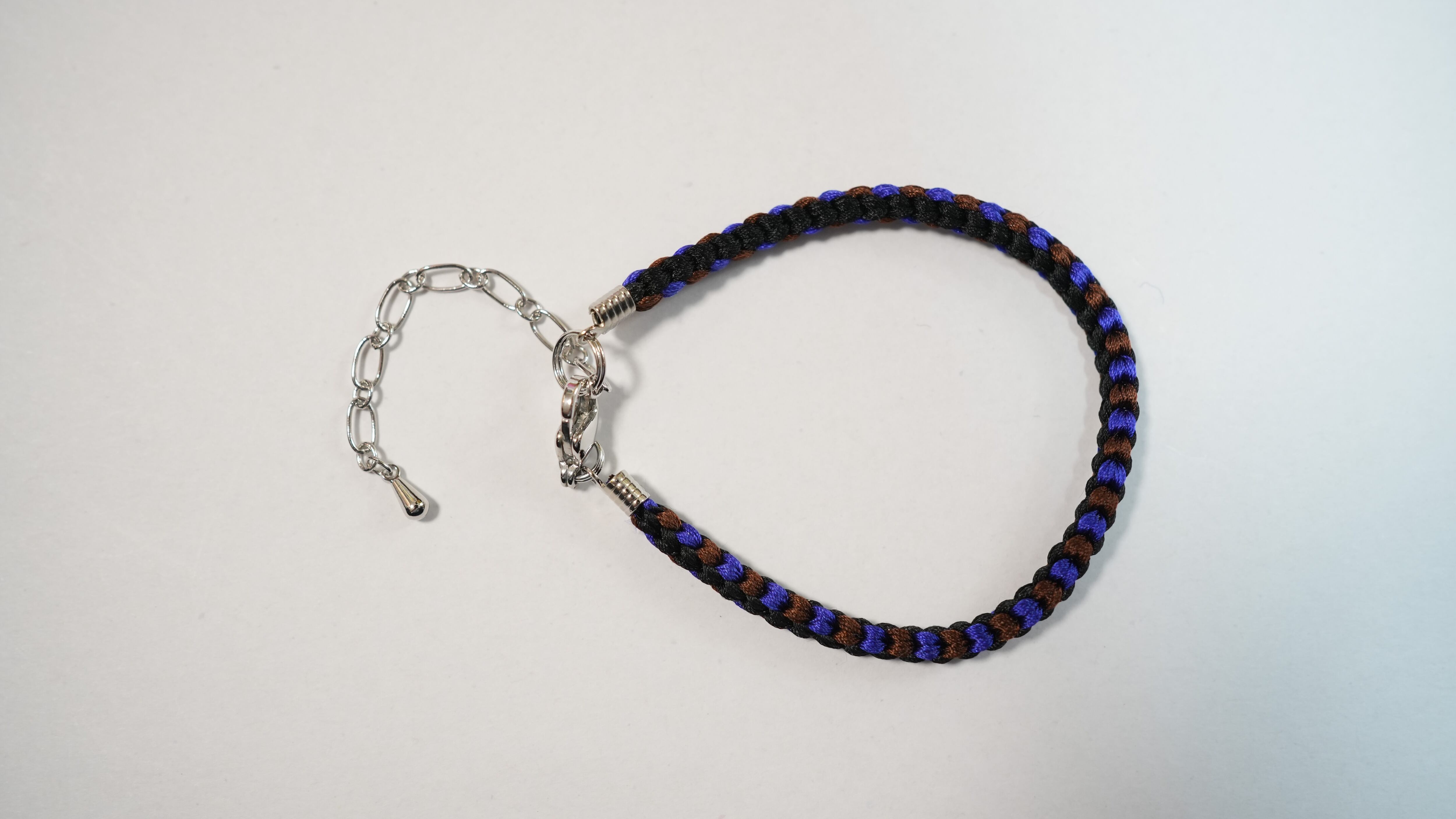 青・茶色・黒の絹糸を使用した、一重タイプの組紐ブレスレットです。