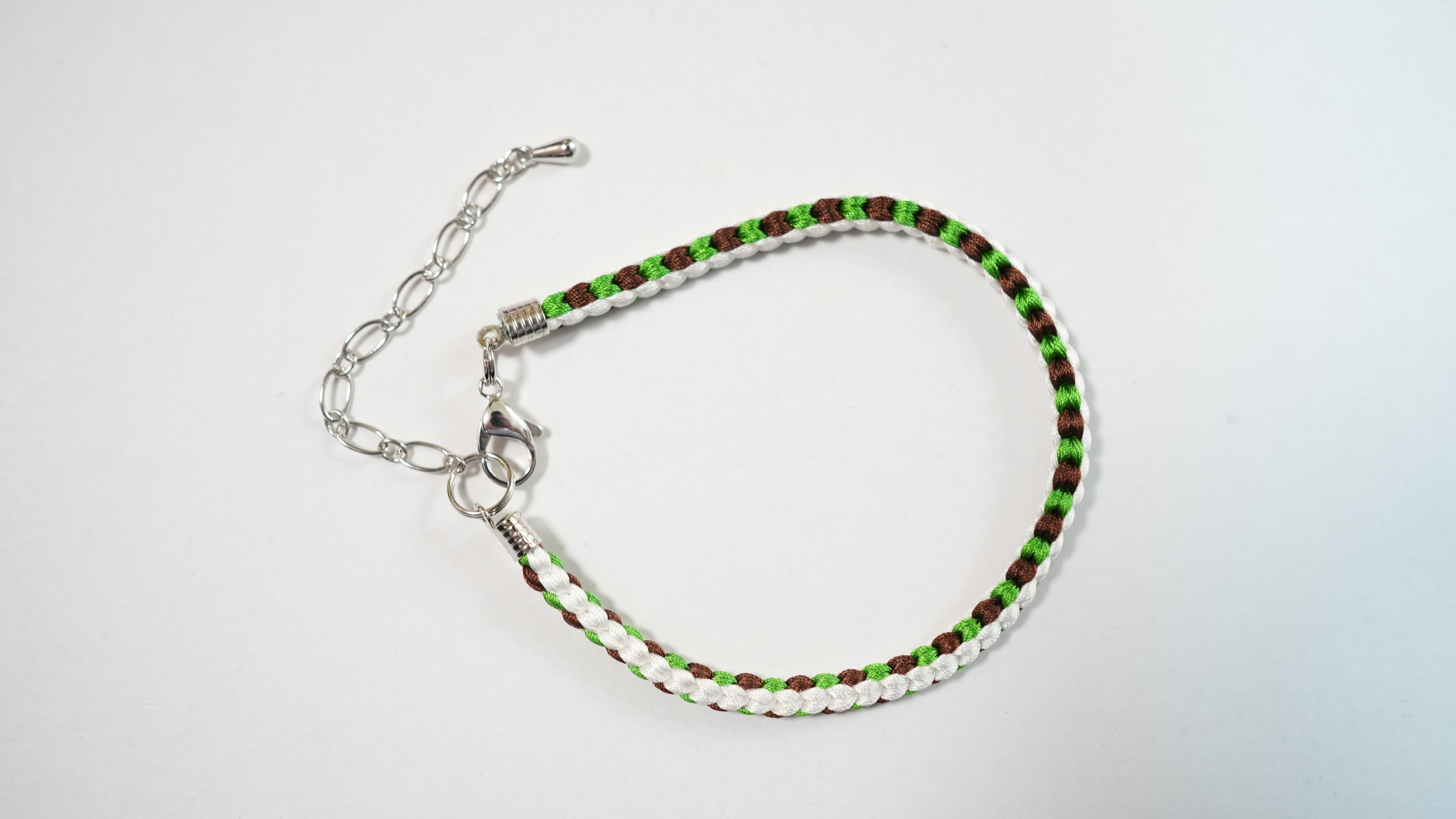 緑・茶色・白の絹糸を使用した、一重タイプの組紐ブレスレットです。