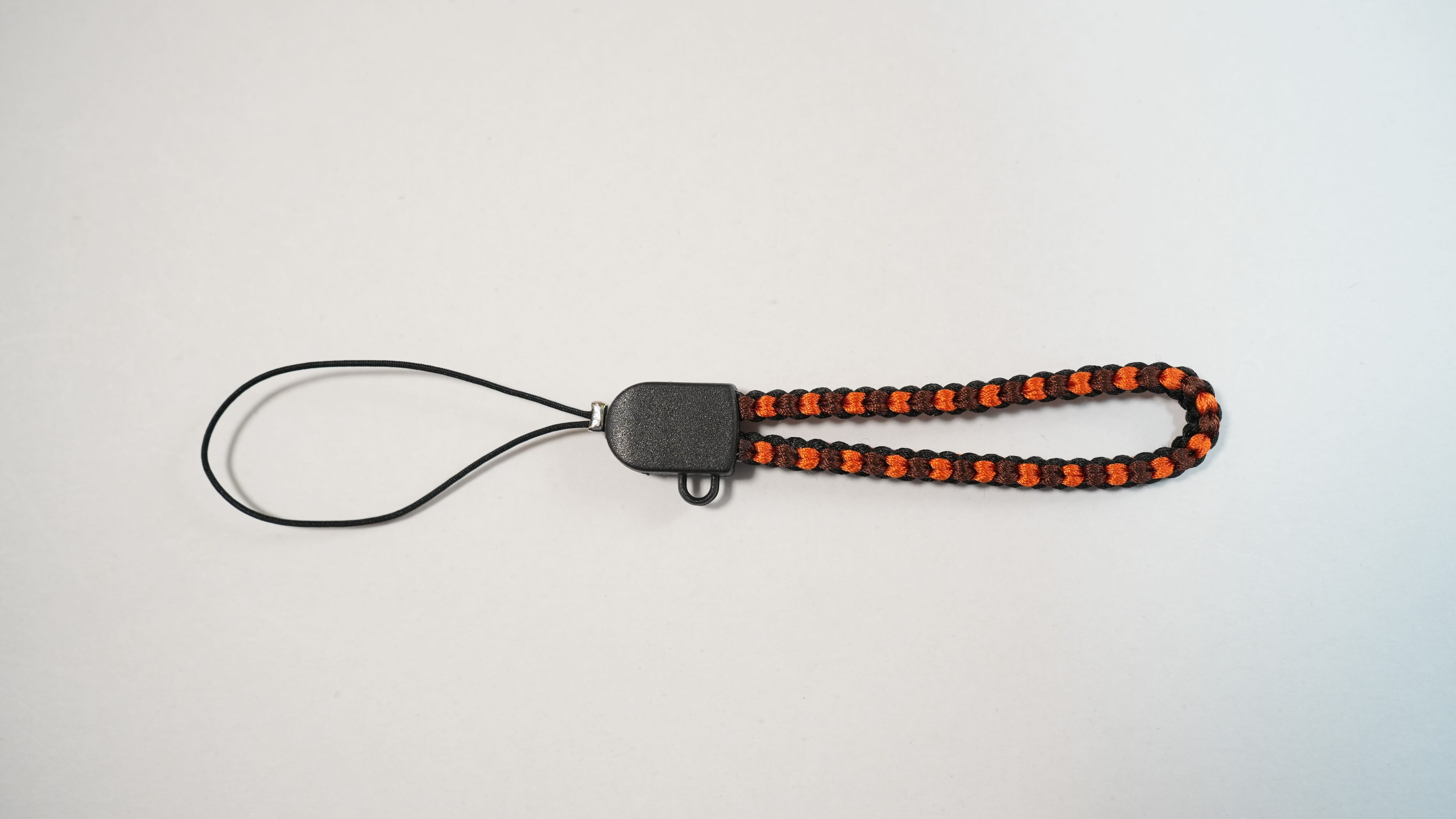 オレンジ・茶色・黒の絹糸を使用した組紐のストラップです。