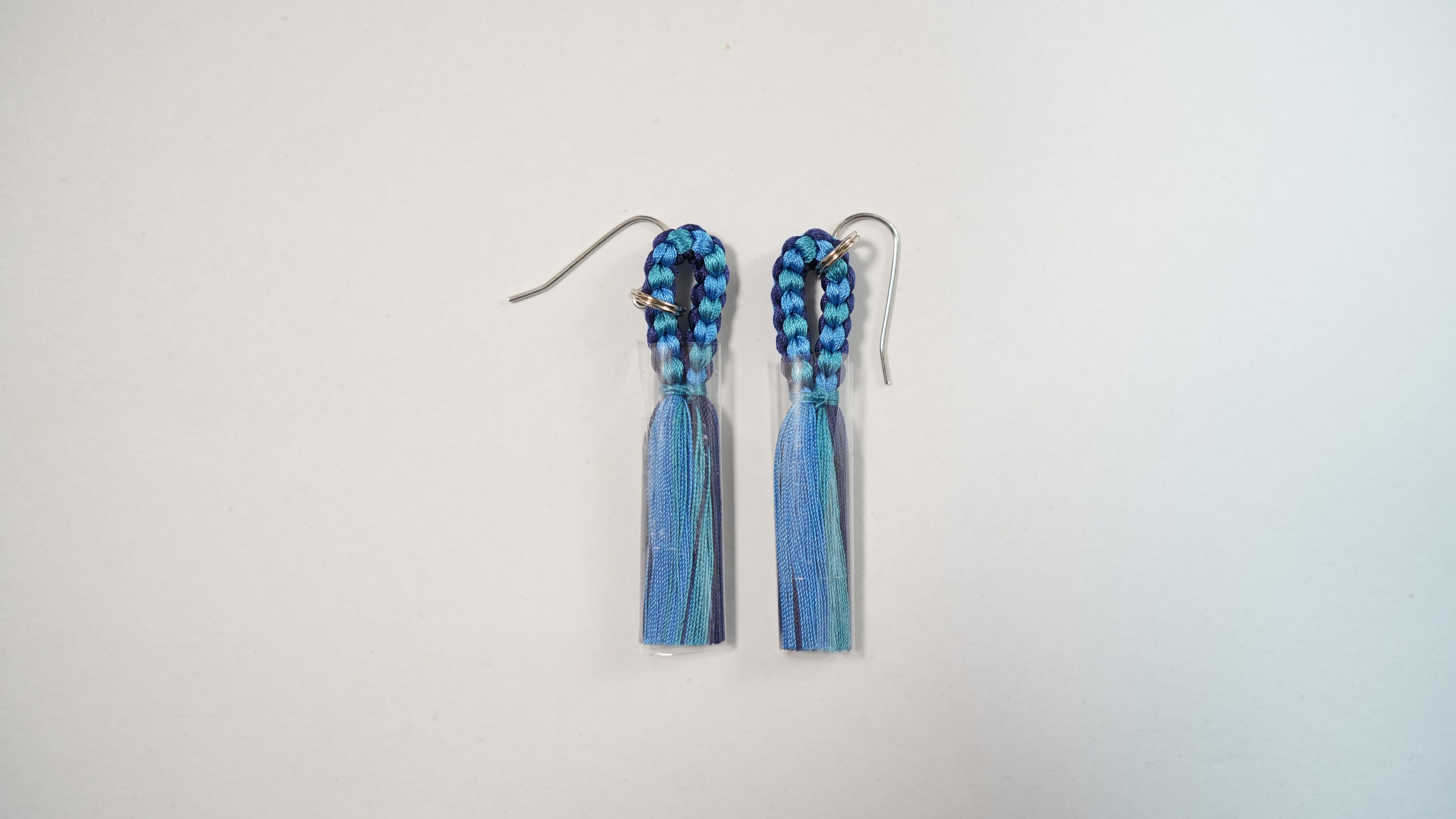 青・水色・紺色の絹糸を使用した、組紐のピアスです。