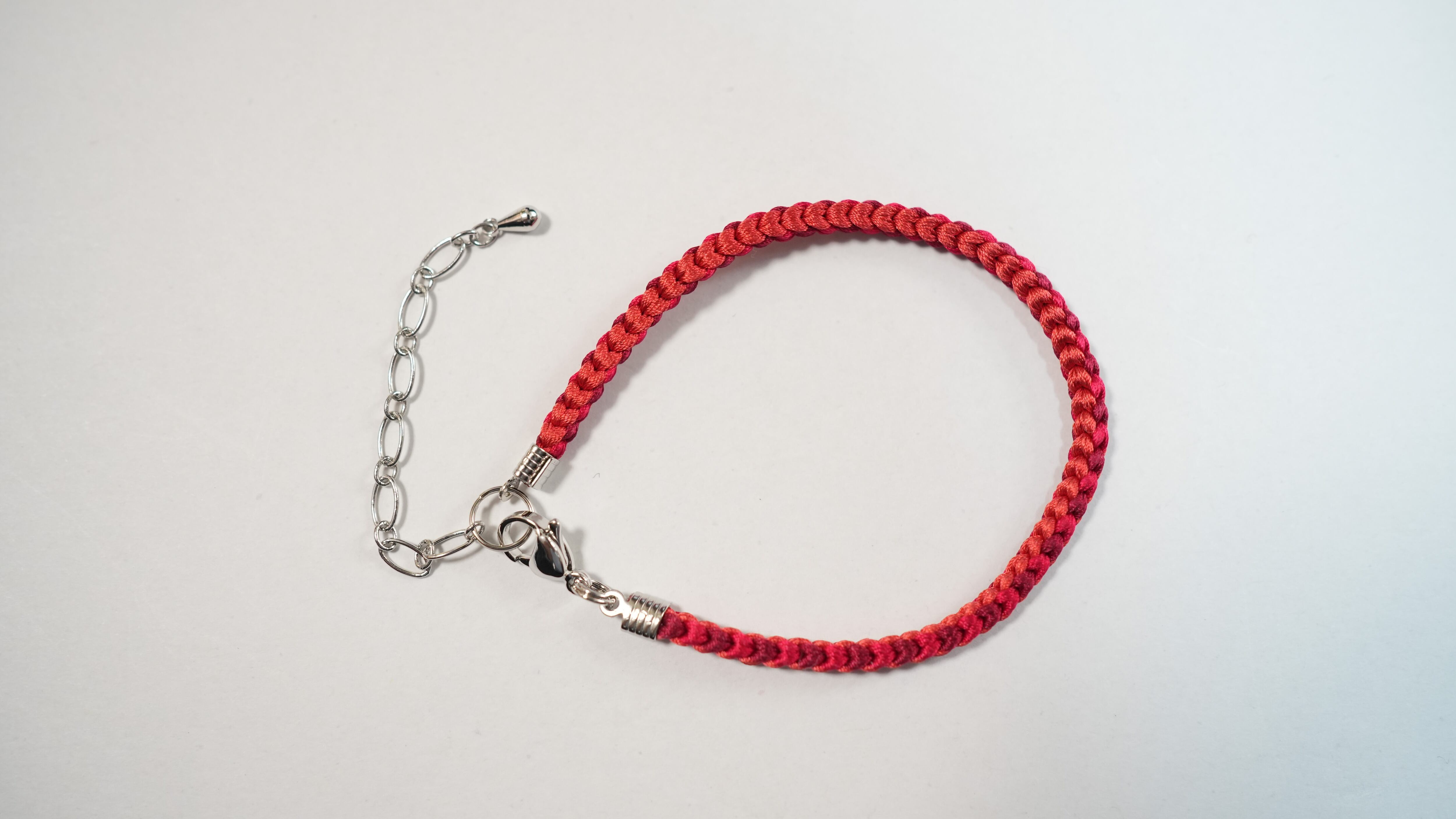 ワインレッド・赤・朱色の絹糸を使用した、一重タイプの組紐ブレスレットです。