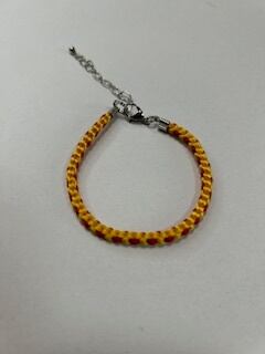 全長(金具・アジャスター含め)約23cm・紐部分の長さ約14cm 黄色・赤の絹糸を使用した、一重タイプの組紐ブレスレットです。 ※国内配送のみ 色味等、光の加減で見え方が異なる場合もございます